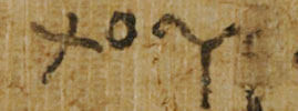 If a word or, as in this case, a letter was forgotten, it was often written above the mistake, in the space between the lines. In this instance, the scribe intended to write the phrase ἀπόλωλέμ μοι, but forgot to write two μ's in a row. He then added the second μ in the space above the current line.